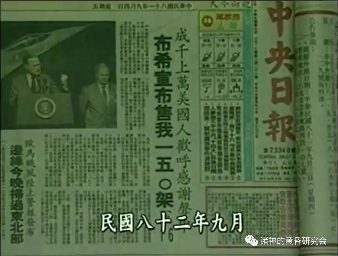 1992年刊登美国政府同意出售F-16战机的《中央日报》,截取自“莒光园地”纪录片