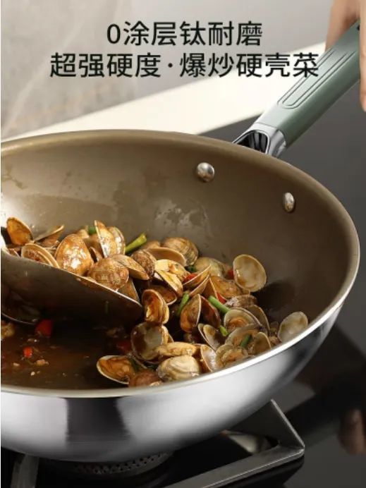 安全,无重金属析出,一家人放心入口;导热储热好,比单层钛锅更适合爆炒、有锅气!