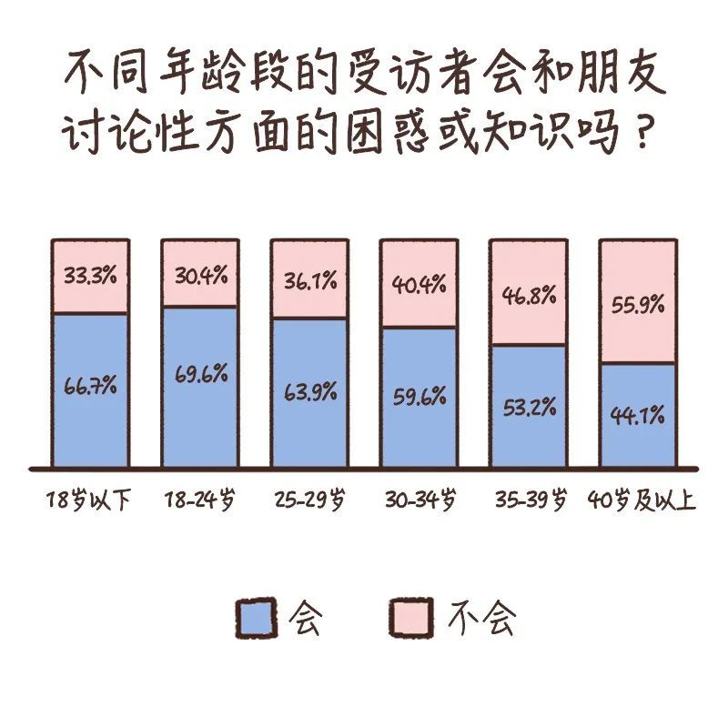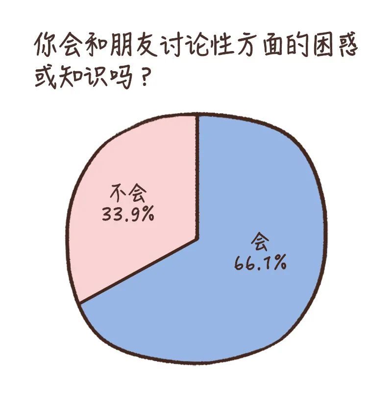 首先,从调查结果来看,人们已经越来越愿意去谈论“性”这个话题了。在所有受访者中,有高达66.1%的人表示,自己会在生活中和朋友讨论性方面的知识和困惑。