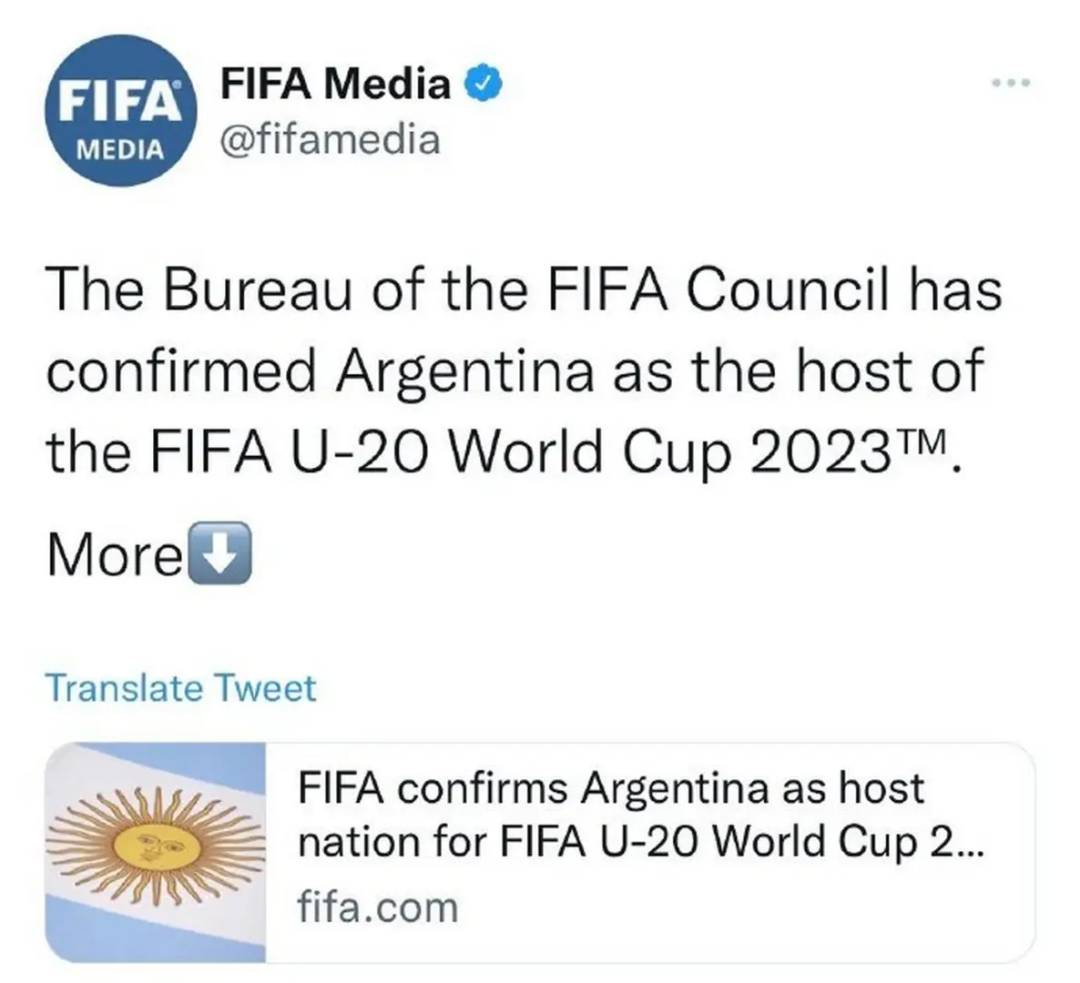 ▲2023年国际足联宣布取消印尼的U20世界杯举办权,阿根廷取而代之因为印尼禁止以色列球员入境