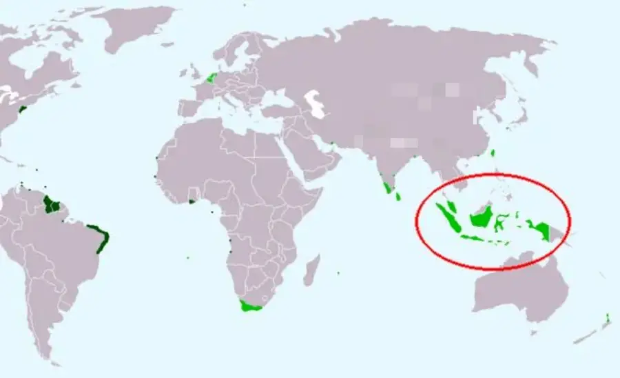 ▲荷属东印度,印度尼西亚的前身(红色圈)
