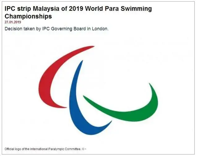 ▲国际泳联取消马来西亚举办2019年世界残疾人游泳锦标赛