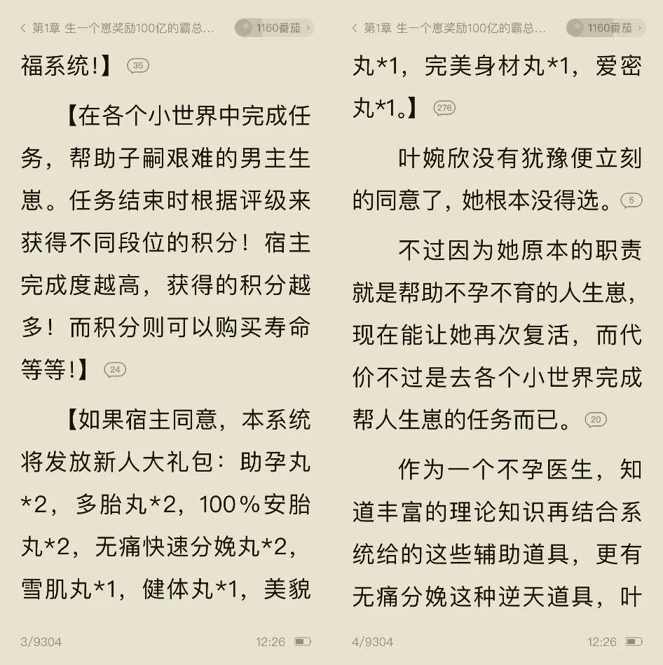 言情小说中生子流派的演变趋势,基本就是越来越强调怀孕生子的战略价值。好孕体质成为必备金手指,相应的还出现了专等“好孕女主”来攻略的“绝嗣男主”,以及将这种设定游戏化的生子系统。