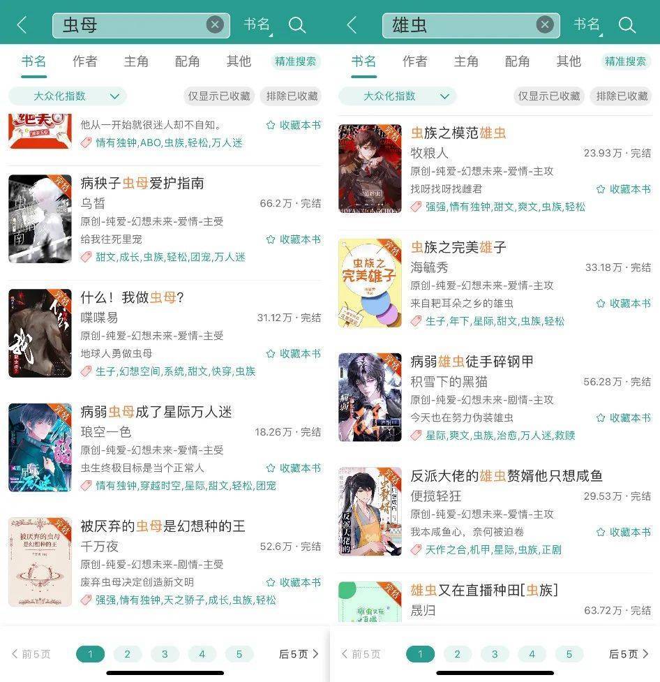 对于女频耽美来说,虫母身份则相当于一张“男妈妈”、“万人迷”体验卡,越反差越有趣,如《恐同直男沦为好孕虫母》《硬汉被迫成为虫母》。