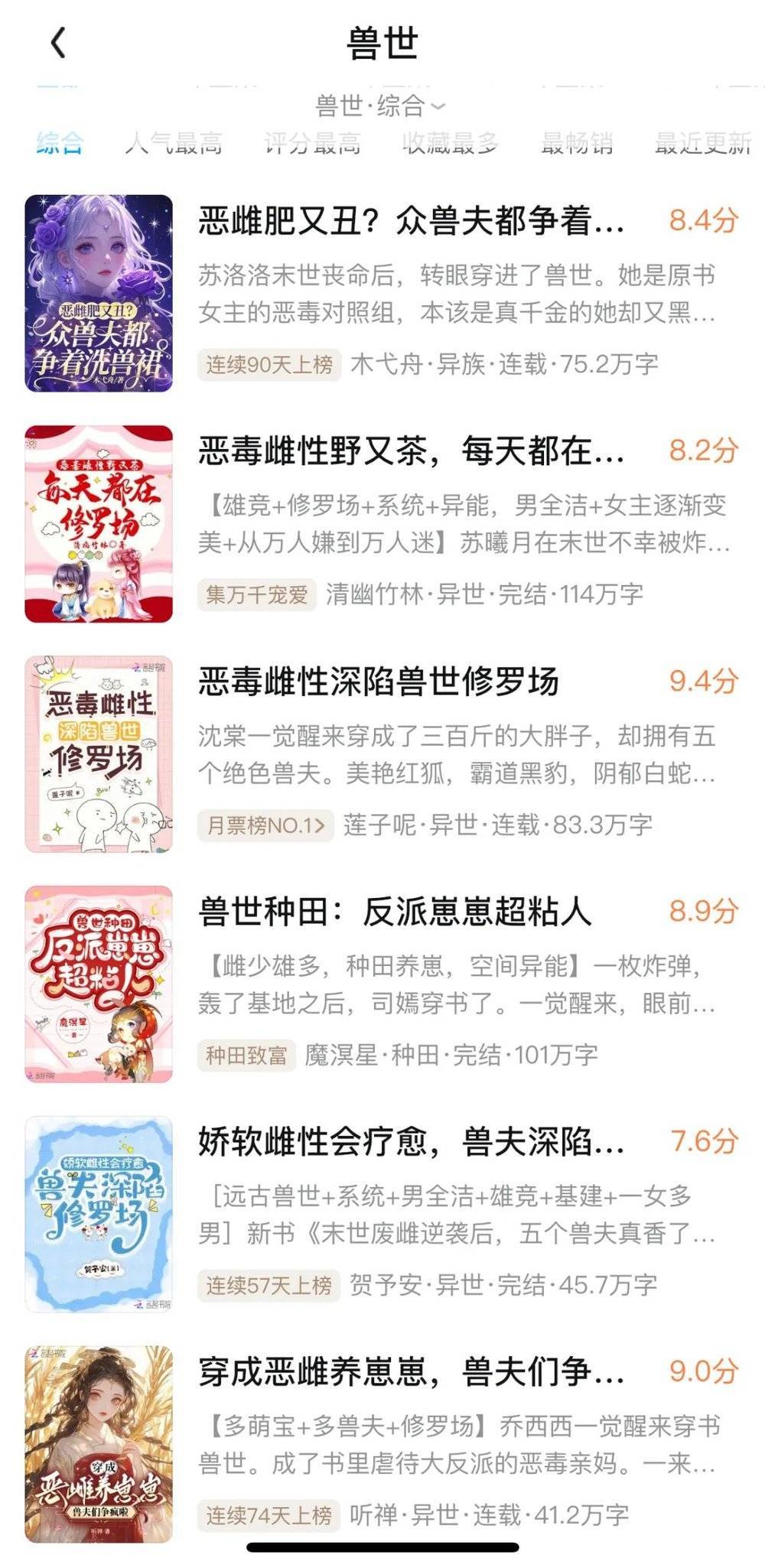 星际背景下还有一类特殊的兽世文,讲究绝境之下繁衍第一,雌性地位更高、受雄性供养,但前提是以“生育力”的高低决定资源分配与兽夫多少。大家排排坐比生育,生子系统、兔子原型什么的,优势可就明显了。
