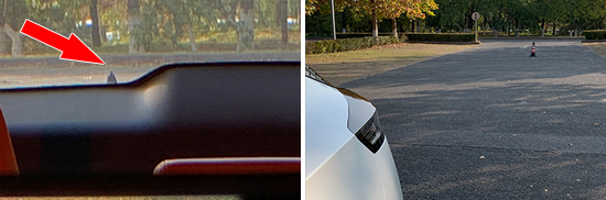 后方视野测试中,依旧将桩桶固定摆放,随后移动车辆直至可以观察到桩桶上沿为止。经实测,后方视野所测得的距离为19.255m,在测试过的同级别车型中处于下游水准,后方视野盲区较大。