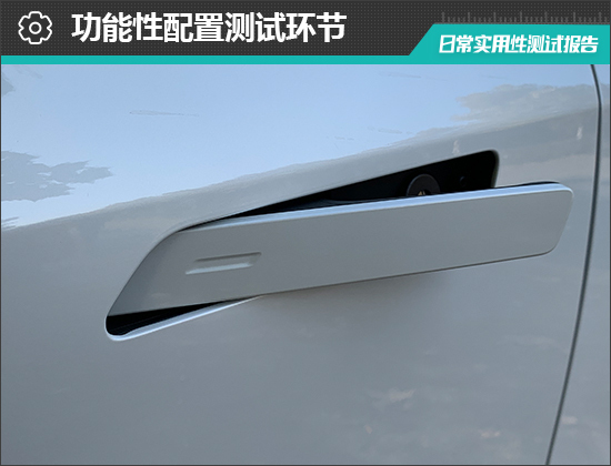 评测车配备驾驶位无钥匙进入功能,并且支持感应解锁,驾驶者携带智能钥匙靠近车辆就会自动解锁。在需要锁车时,只需要携带智能钥匙离开车辆,就会自动上锁。实测解锁和上锁过程均十分顺畅。同时,评测车还配备了蓝牙钥匙。