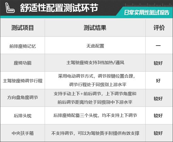 二、舒适性配置测试环节