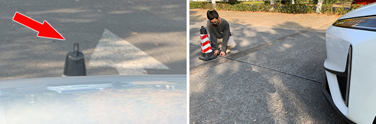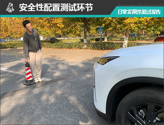 在测试前方视野环节,我们采用高70cm的桩桶作为参照物,随后调整车距,直至在主驾驶位可以看到桩桶上沿。经过测试,桩桶与车头最终测得的数据为2.285m,在测试过的同级别车型中处于中上游水准。