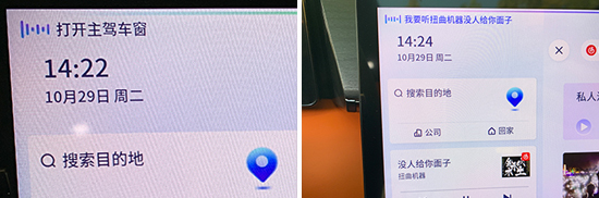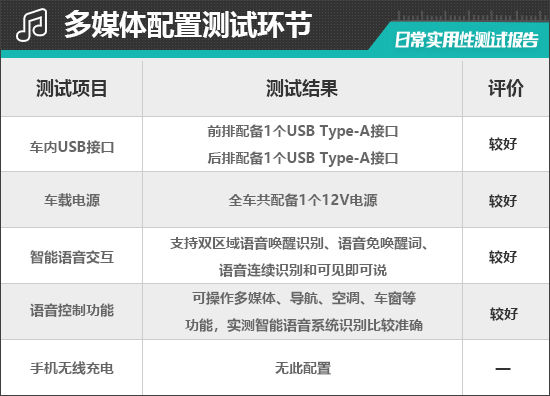 经过实测,评测车能够识别全部指令,语音识别准确,反应速度较快。此外,评测车还支持双区域语音唤醒识别、语音免唤醒词、语音连续识别和可见即可说,交互体验表现较好。
