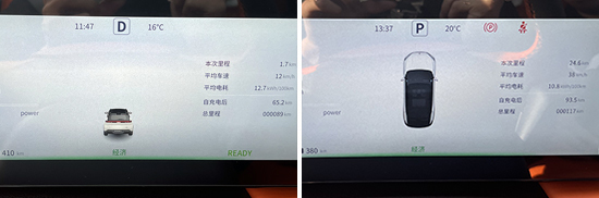 在实际测试中,将车内空调温度调至18摄氏度,并开启经济模式。行驶路线途经城市道路和环路,平均车速为50±2km/h。到达目的地时,车辆表显的公里数增加28km,续航里程减少30km,即平均每行驶1km消耗的续航里程约为1.07km。