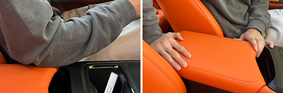 前排中央扶手造型规整且尺寸适中,表面采用软性材质包裹,枕靠舒适性不错。虽然其不支持前后移动和角度调节,但驾驶者在驾驶过程中依然可以将肘部倚靠在上面。