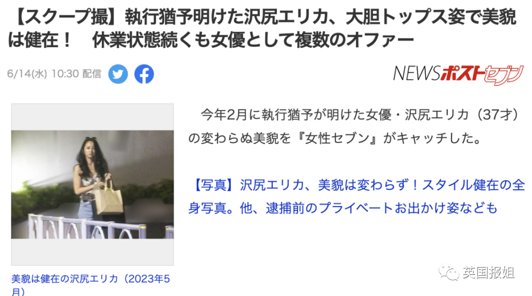 但前面的两次报道后来都没了水花,到了2023年6月,日媒拍摄到泽尻外出的身影。