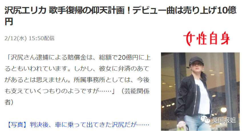 2019年被判缓刑3年的泽尻,在2020年2月被爆出计划以歌手重新出道。
