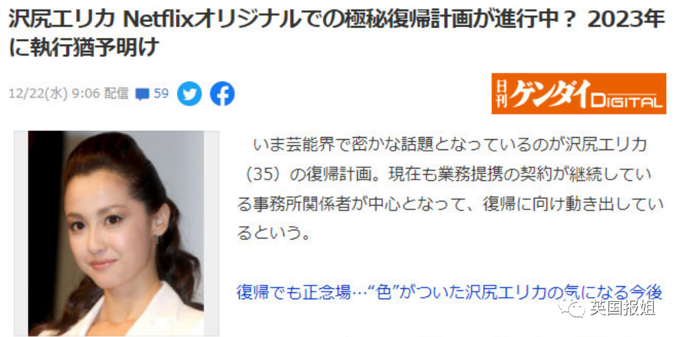 前段时间,日本知名女星泽尻英龙华(曾用名泽尻绘里香,以下简称泽尻)复出的消息在日本各界引起轩然大波。
