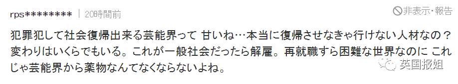 普通人的话早就被解雇了吧,现在的社会就业多么困难,轻易原谅她的话,娱乐圈就永远难以消除毒品了。”