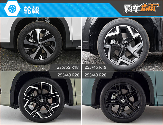 轮毂方面,300两驱精英和330两驱精英均标配18英寸轮毂,轮胎具体规格为235/55 R18。同时,两款车型还可选装235/50 R19规格轮胎;330两驱精英City包和380四驱豪华均标配19英寸轮毂,轮胎具体规格为255/45 R19,并且可以选装380四驱豪华Easy包标配的255/40 R20规格轮胎。轮毂款式方面,380四驱豪华Easy包搭载的20英寸熏黑式轮毂更符合年轻消费者审美,运动感十足。
