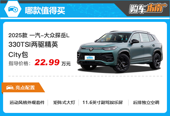 综合来看,如果您正在关注2025款一汽-大众探岳L,那么330两驱精英City包值得您优先考虑。