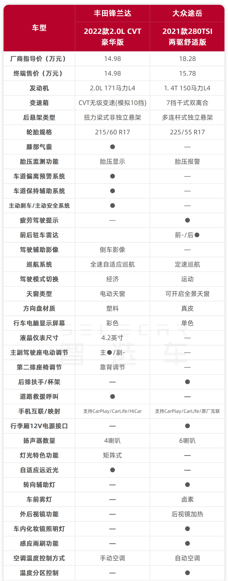 15万元级,合资品牌紧凑型SUV,丰田锋兰达和大众途岳怎么选?