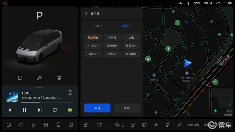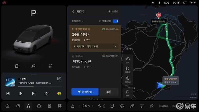 * 理想MEGA支持充电规划功能,在车机屏幕输入目的地后,车辆将根据目的地距离、沿途场站分布情况,自动为您规划充电路线。