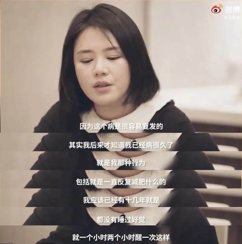 因为抑郁症,马思纯需要服用含激素的药物,在短短一个月内,她胖了近40斤。最开始发胖的时候,马思纯并没有觉察。
